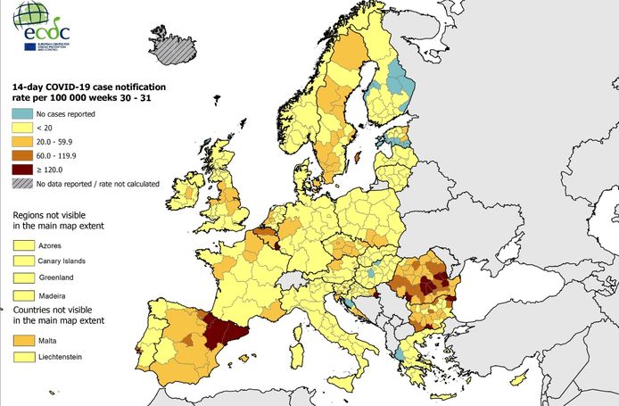 Vanaf 24 juni 2021 worden ook het griekse vasteland (behalve athene) en kreta geel. Vaccinatiecijfers 28 juni t/m 4 juli 2021. Als de regeringen in boedapest en warschau geen beterschap tonen, kan dat hen voor het europees hof van justitie brengen. De kaart van de europese gezondheidsdienst ecdc (european centre for disease prevention and control) geeft de actuele stand van de de kaart is gebaseerd op het aantal positieve tests in de afgelopen veertien dagen per 100.000 inwoners in combinatie met het percentage positieve tests van. Ook stelt ze een interactieve kaart op met informatie om vakantiegangers op weg te helpen.